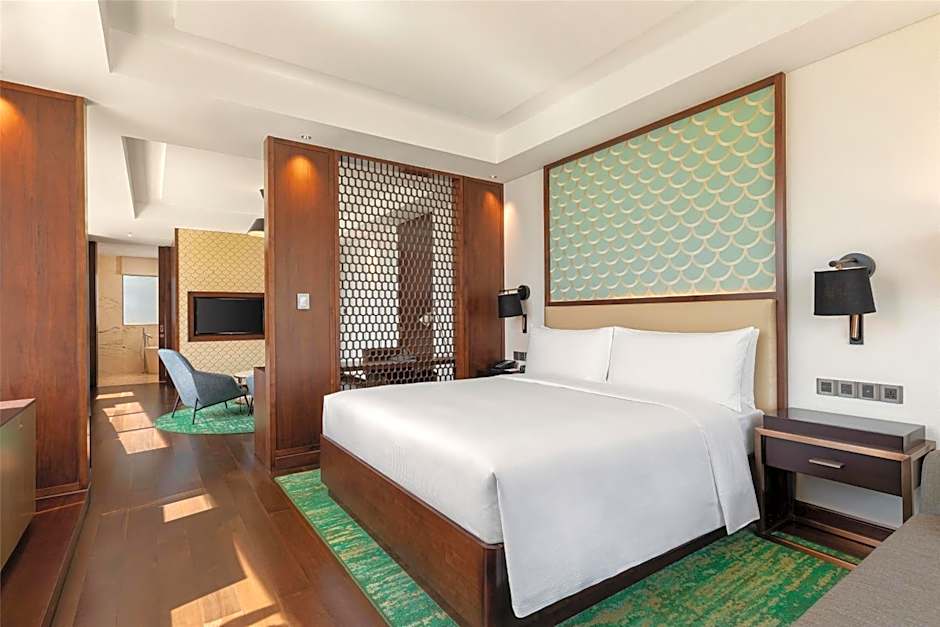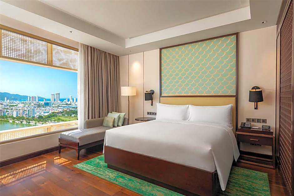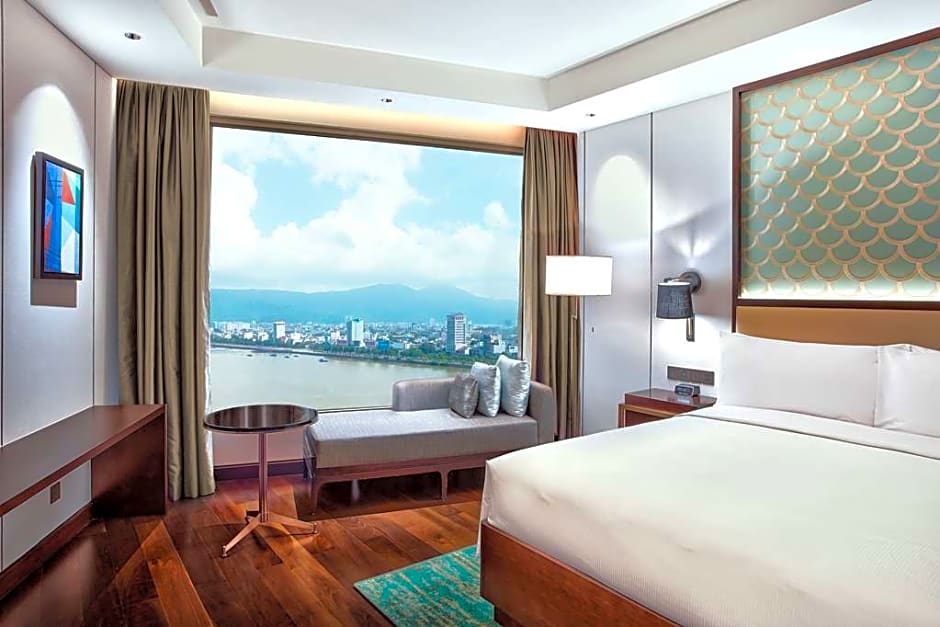 The room includes either the view of Han River or the ocean. The separate living area comes with chaise lounge, sofa, and a well-appointed working desk.